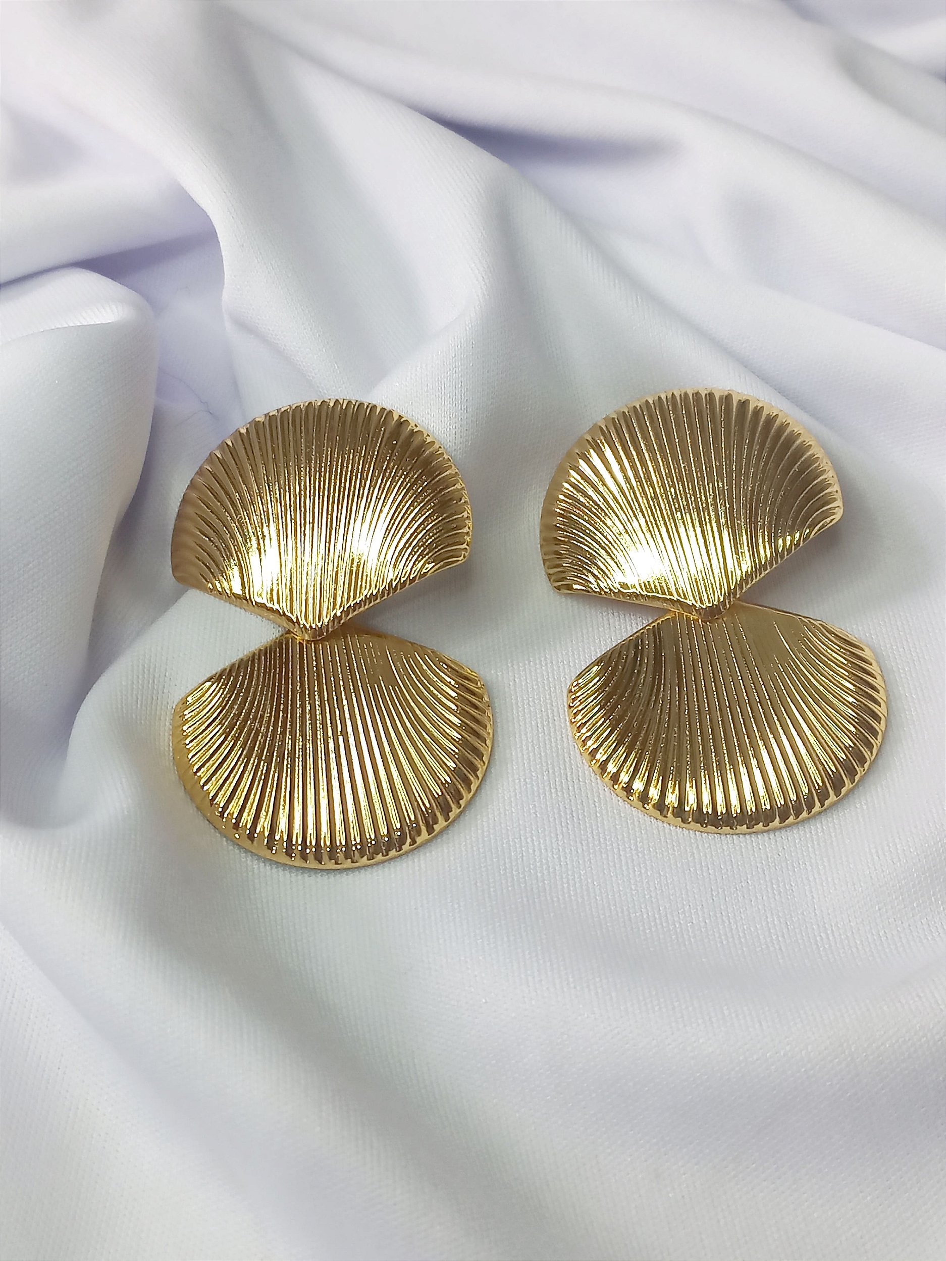 Brinco Grande 2 Conchas (56MM) banhado a ouro 18K é imponente, leve e com design inspirado na beleza do mar. Com textura elegante e acabamento jateado, é hipoalergênico (níquel free) e cheio de movimento. Uma peça irresistível que traduz sofisticação natural e destaca sua presença em qualquer ocasião.